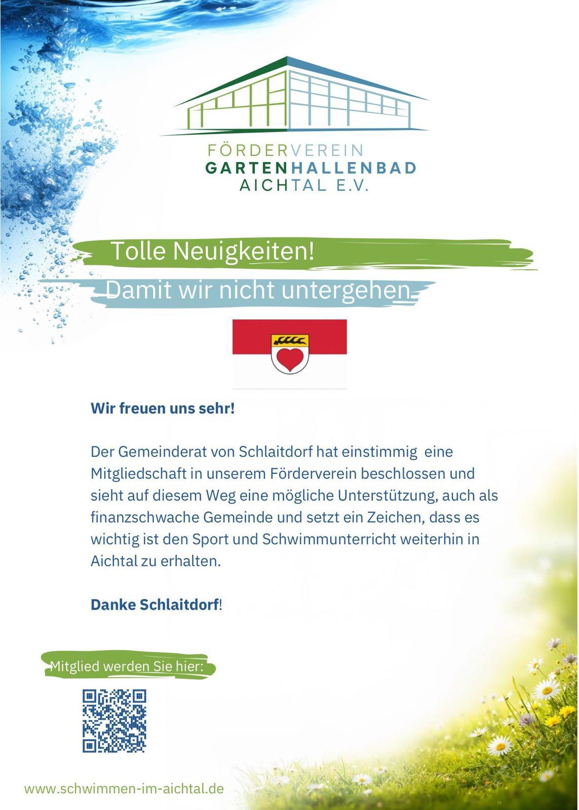 Ein großer Dank geht heute an die Gemeinde Schlaitdorf, die mit ihrem Eintritt in unseren Förderverein ein Zeichen setzen!